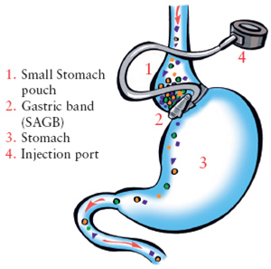 Laparoscopic Adjustable Gastric Banding involves inserting a specially made band around the top of the stomach. This is done with a keyhole technique so recovery is quick. During the course of the surgery, no organs are cut, removed or rearranged, hence the procedure is completely reversible.